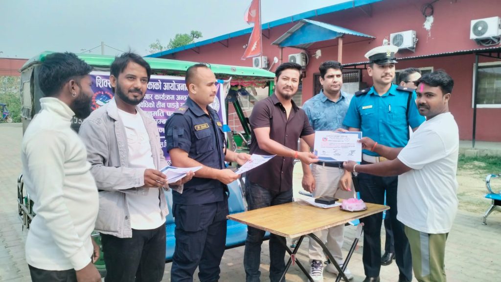 कपिलवस्तु ।शिवराज नगरपालिकाले ४० जना इ-रिक्सा चालकहरूलाई १५ दिने तालिम प्रदान गरी प्रमाणपत्र वितरण गरेको छ। मेयर रोजगार कार्यक्रम अन्तर्गत चालक अनुमतिपत्र प्राप्त गर्न सहज बनाउन र ट्राफिक ज्ञानबारे जानकारी दिनु तालिमको उद्देश्य रहेको शिवराज नगरपालिकाका प्रमुख प्रशासकीय अधिकृत बाबुराम पौडेलले जानकारी दिनुभयो।