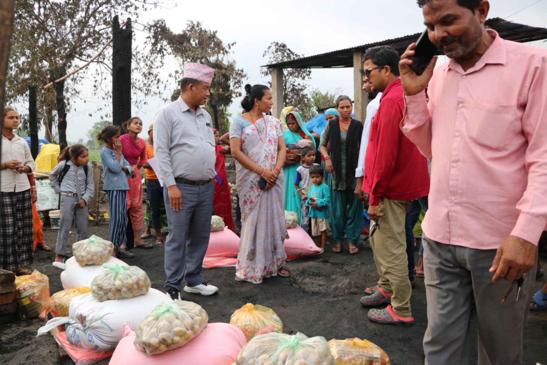 कपिलवस्तुकाे विजयनगर गाउँपालिका-३ डगडईका आगलागी पिडितलाई राहत वितरण गरिएको छ । गत राति करिब ३ बजतिर अचानक आगलागी हुँदा ९ ओटा फुसका घर पूर्ण रुपमा ९ घर जलेर नष्ट भएको थियोे । गाउँपालिका अध्यक्ष गाेपाल बहादुर थापा, उपाध्यक्ष लक्ष्मी कुमारी चाैधरी, ३ वडा सदस्य माेहम्मद सई लगायतले आगलागी पिडितलाई राहत वितरण गरेका हुन् ।