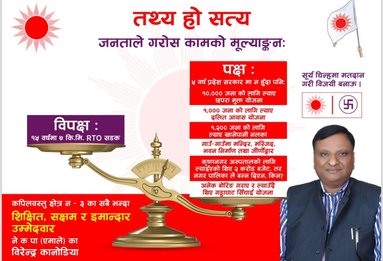 निर्वाचन मिति नजिकिँदै जाँदा कपिलवस्तु–३ मा विकासका एजेन्डामै केन्द्रित बहस भइरहेको छ, जहाँ कनौडियाको पक्षमा देखिएको जनलहरले चुनावी प्रतिस्पर्धालाई थप रोचक बनाएको छ।