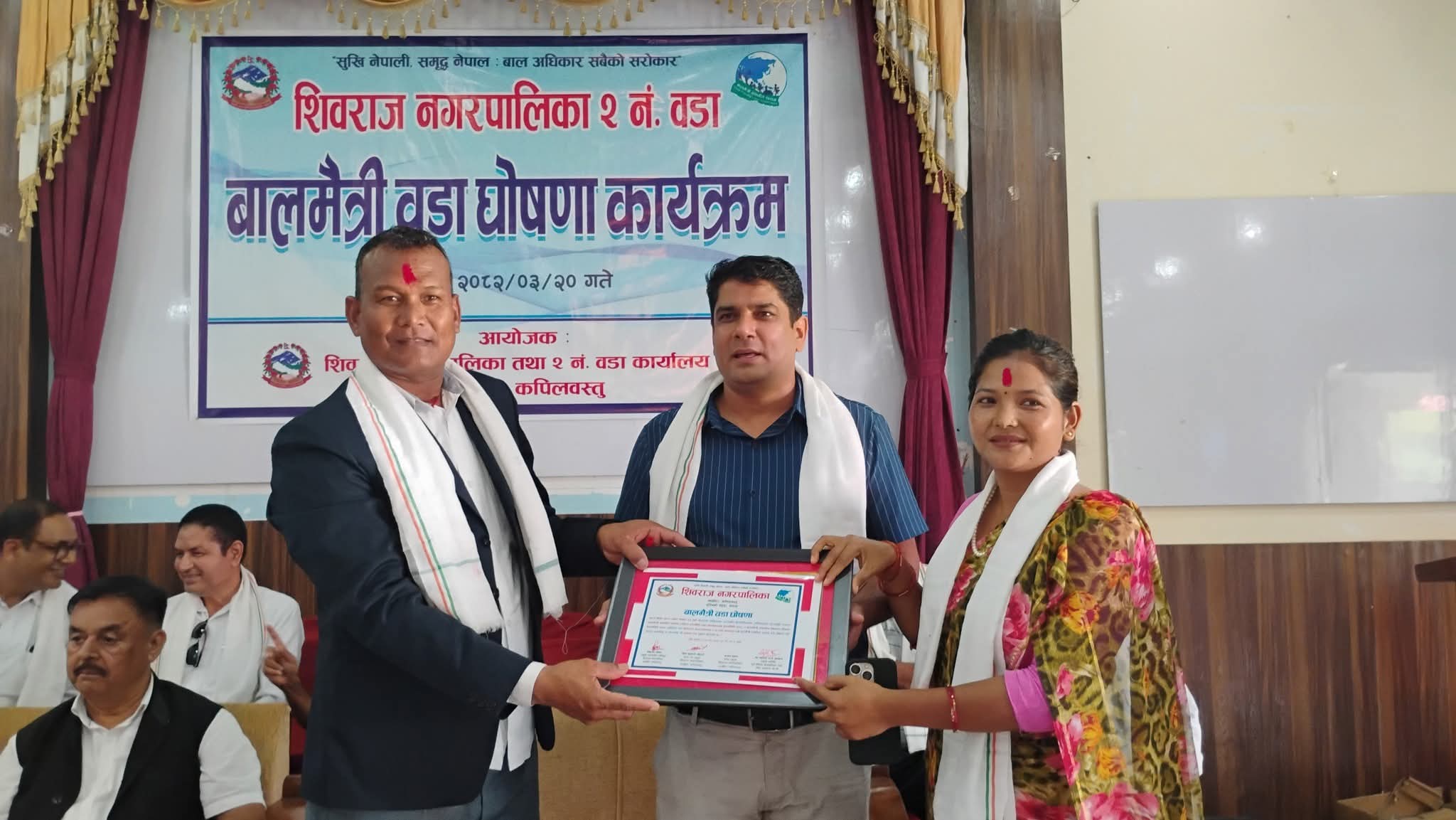 कपिलवस्तु । कपिलवस्तुको शिवराज नगरपालिका वडा नम्बर २ लाई बालमैत्री वडा घोषणा गरिएको छ ।कपिलवस्तुको शिवराज नगरपालिका–२ ले बालबालिकाको समुचित...