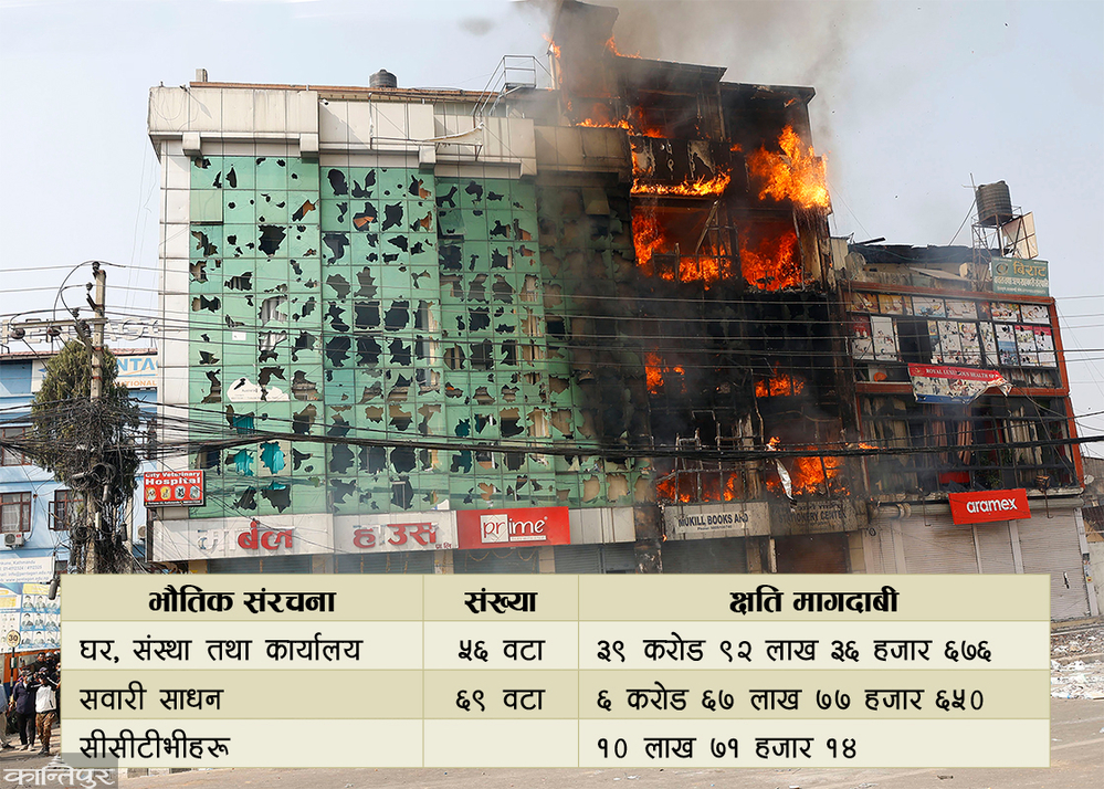 काठमाडौँ — गत चैत १५ मा राजावादीको प्रदर्शनका क्रममा भएको तोडफोड र आगजनीमा करिब ४७ करोड रुपैयाँ बराबरको क्षतिपूर्ति...